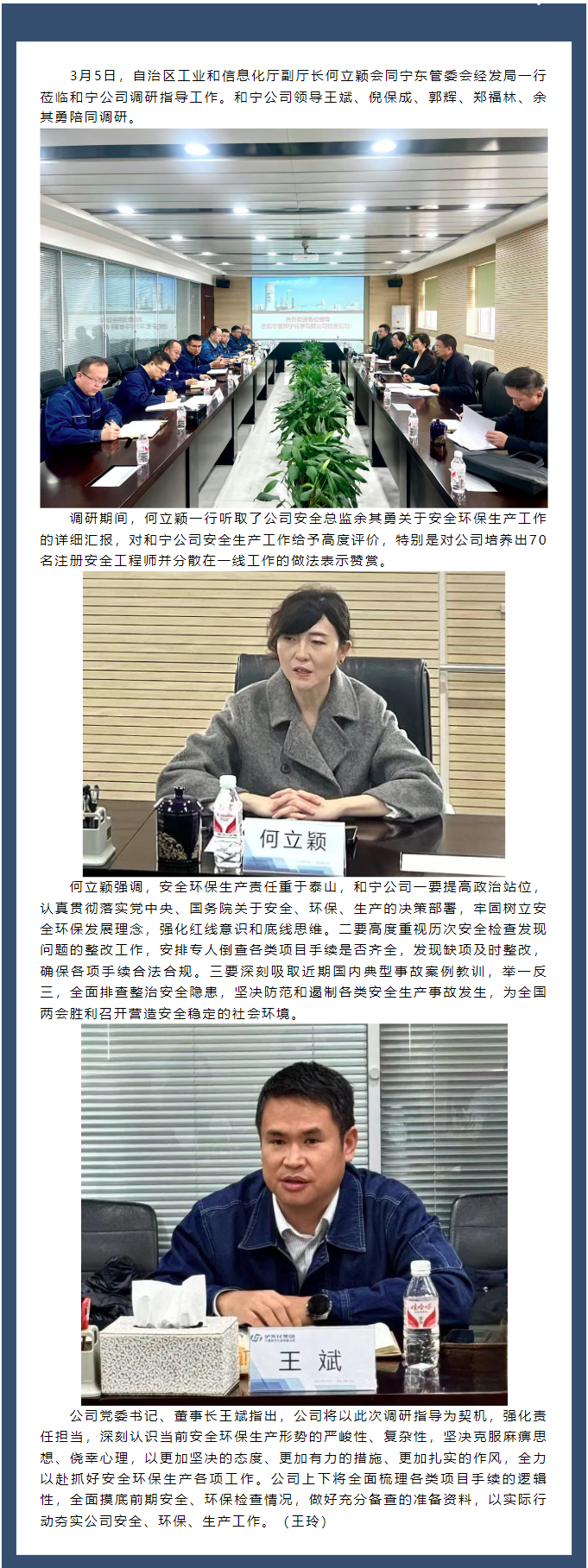 自治區(qū)工業(yè)和信息化廳副廳長何立穎一行蒞臨和寧公司調(diào)研指導(dǎo)工作