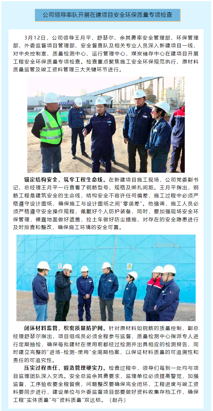 公司領(lǐng)導(dǎo)率隊(duì)開展在建項(xiàng)目安全環(huán)保質(zhì)量專項(xiàng)檢查