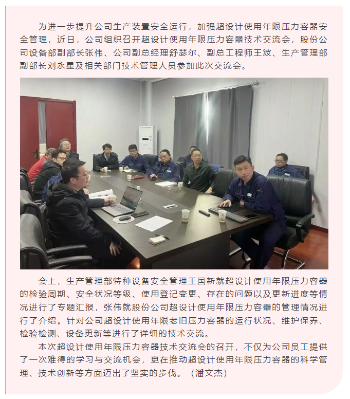 公司組織召開(kāi)超設(shè)計(jì)使用年限壓力容器技術(shù)交流會(huì)