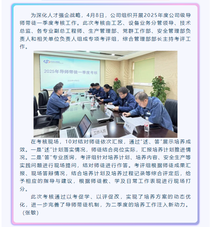 嚴考促學礪精兵 導(dǎo)師帶徒助成長——公司開展2025年導(dǎo)師帶徒一季度考核