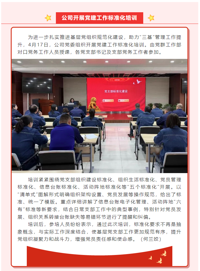 公司開展黨建工作標(biāo)準(zhǔn)化培訓(xùn)