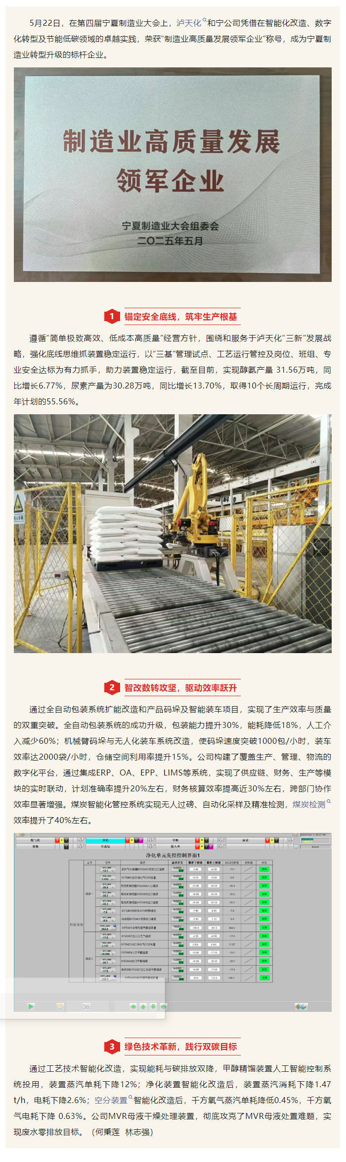 喜報!瀘天化和寧公司榮獲“制造業(yè)高質(zhì)量發(fā)展領(lǐng)軍企業(yè)”稱號