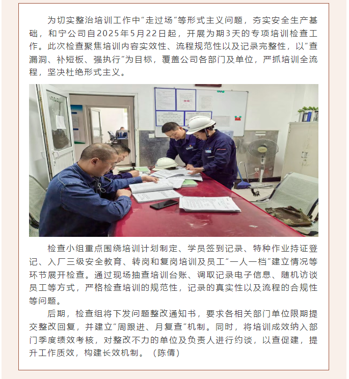 和寧公司開展專項(xiàng)培訓(xùn)檢查