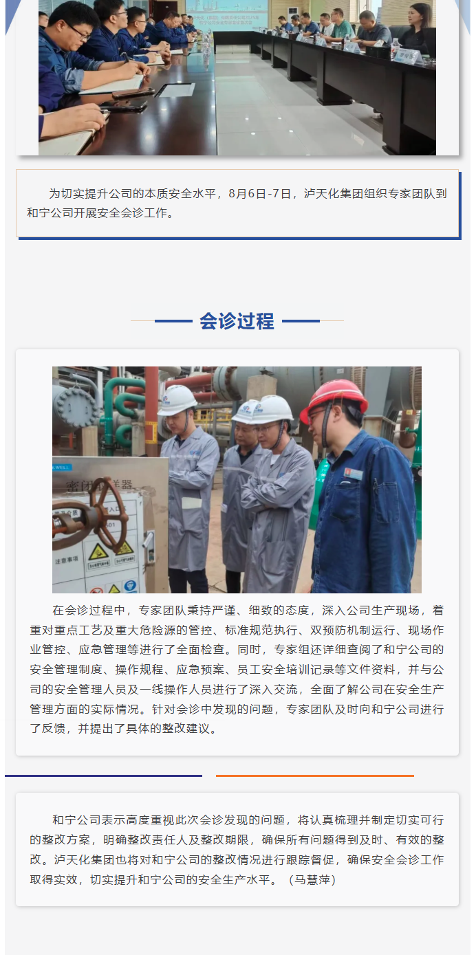 瀘天化集團(tuán)組織專家團(tuán)隊(duì)到和寧公司開(kāi)展安全會(huì)診工作