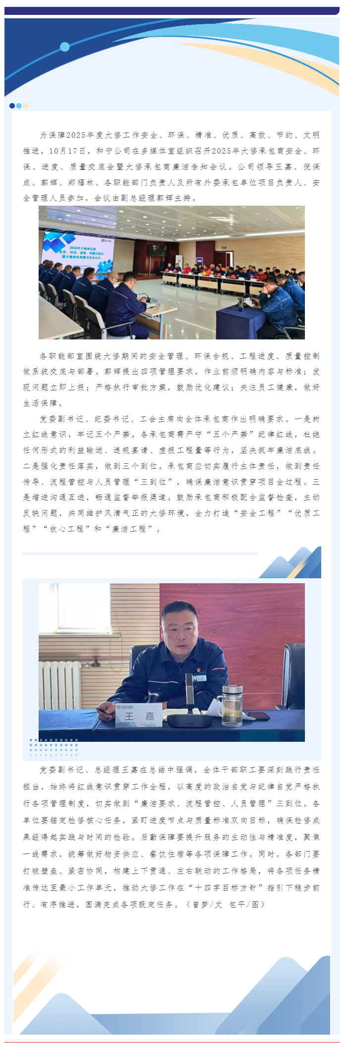 和寧公司召開2025年大修承包商安全、環(huán)保、進(jìn)度、質(zhì)量交底會暨大修承包商廉潔告知會