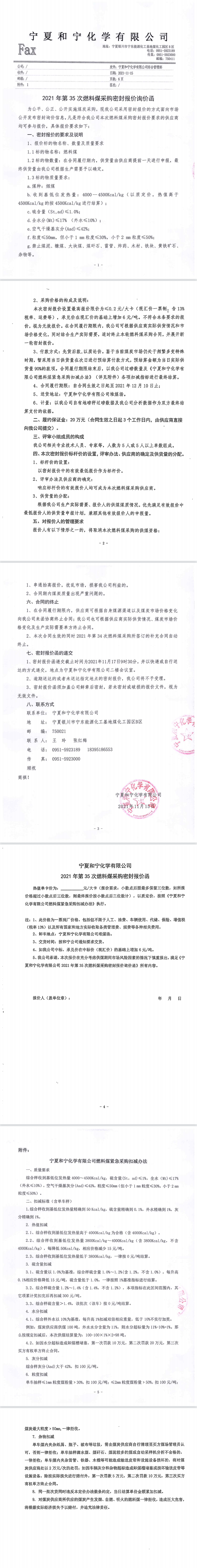2021年第35次燃料煤采購(gòu)密封報(bào)價(jià)詢價(jià)函及報(bào)價(jià)函
