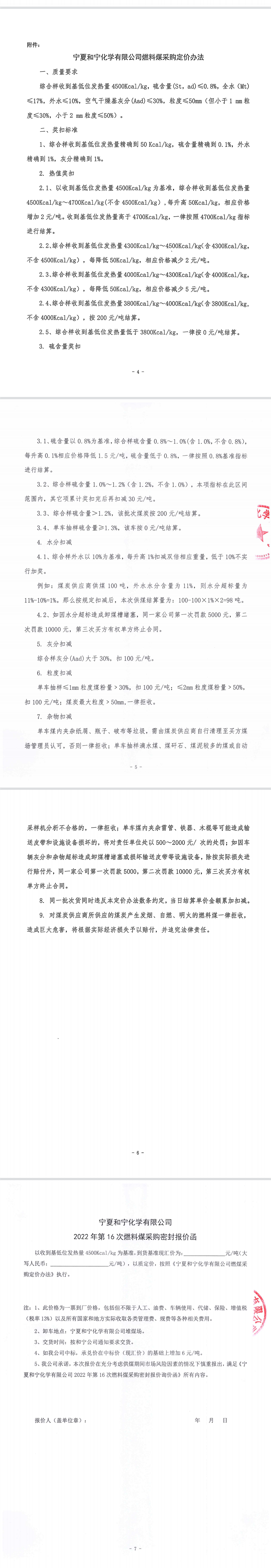 寧夏和寧化學(xué)有限公司2022年第16次燃料煤采購(gòu)密封報(bào)價(jià)詢(xún)價(jià)函