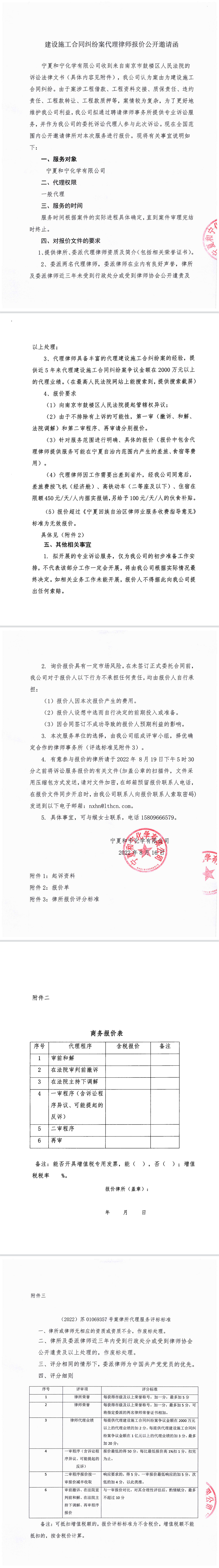 建設(shè)工程施工合同糾紛案代理律師報(bào)價(jià)公開(kāi)邀請(qǐng)函