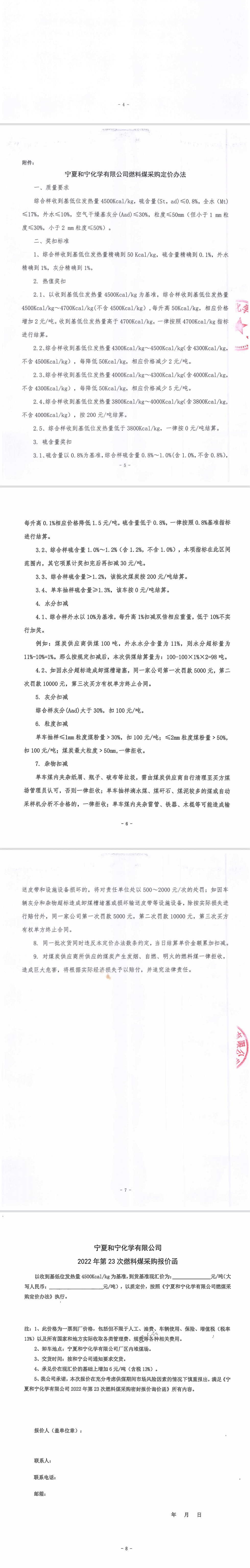 寧夏和寧化學(xué)有限公司2022年第23次燃料煤采購密封報價詢價函