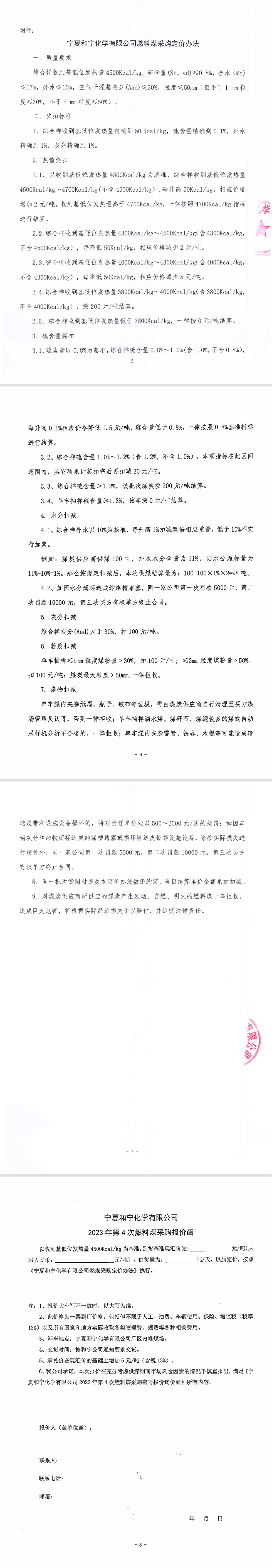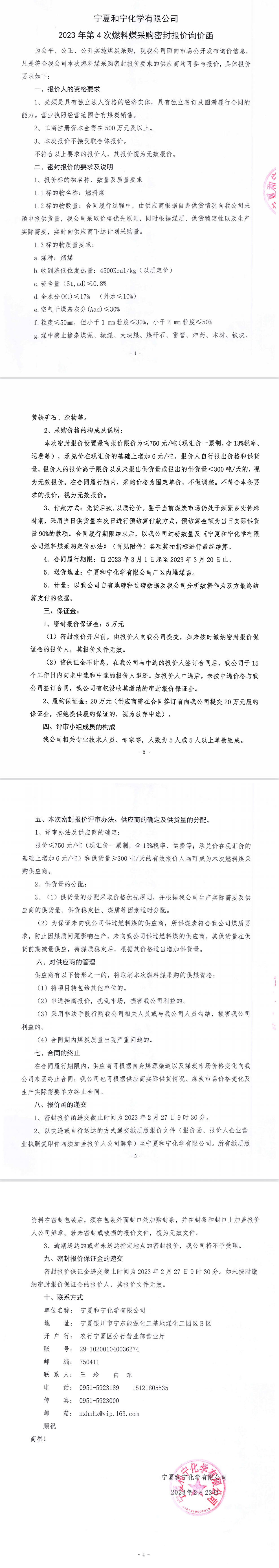 寧夏和寧化學(xué)有限公司2023年第4次燃料煤采購密封報價詢價函