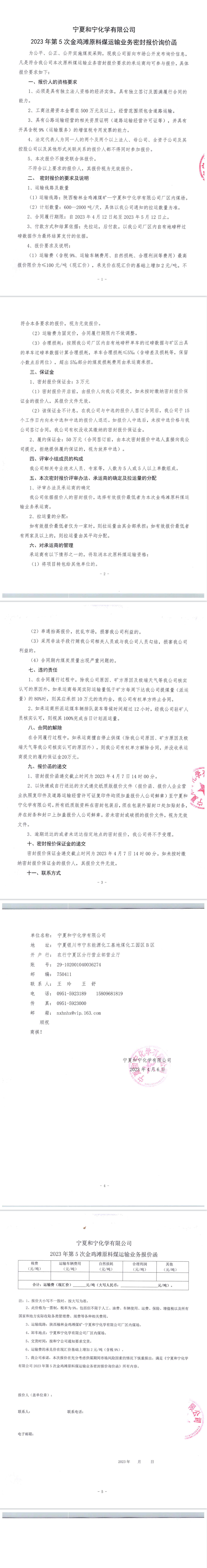 寧夏和寧化學(xué)有限公司2023年第5次金雞灘原料煤運(yùn)輸業(yè)務(wù)密封報(bào)價(jià)詢價(jià)函