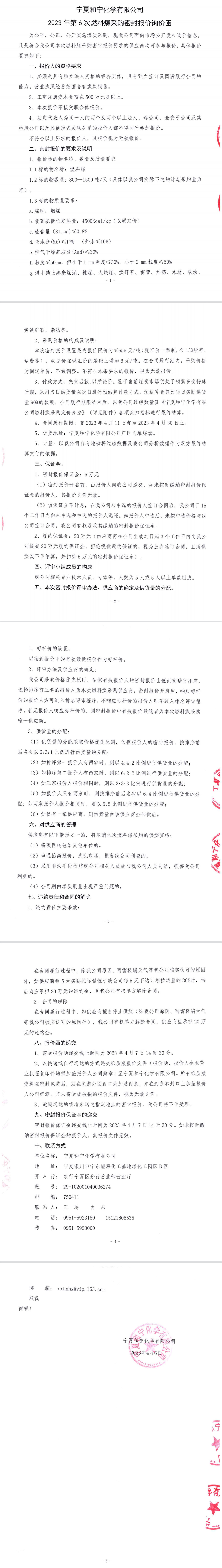 寧夏和寧化學(xué)有限公司2023年6次燃料煤采購(gòu)密封報(bào)價(jià)詢價(jià)函