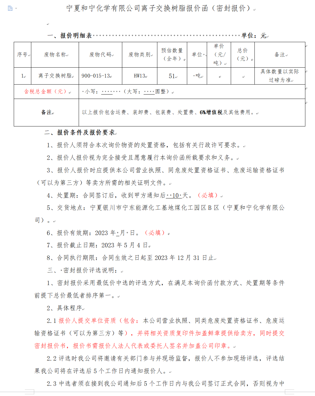 寧夏和寧化學(xué)有限公司離子交換樹(shù)脂
