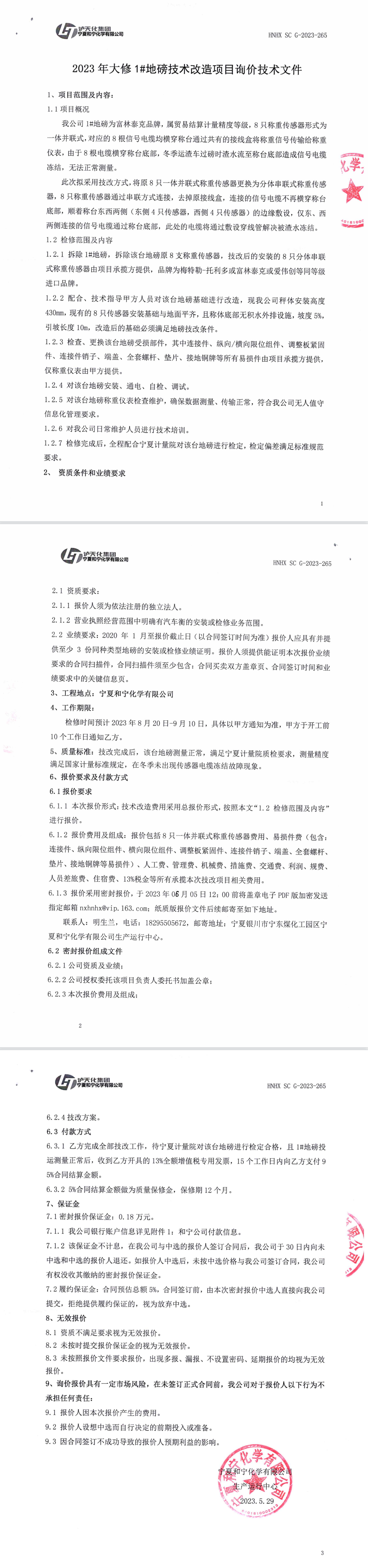 2023年大修1#地磅技術(shù)改造項(xiàng)目詢價(jià)技術(shù)文件