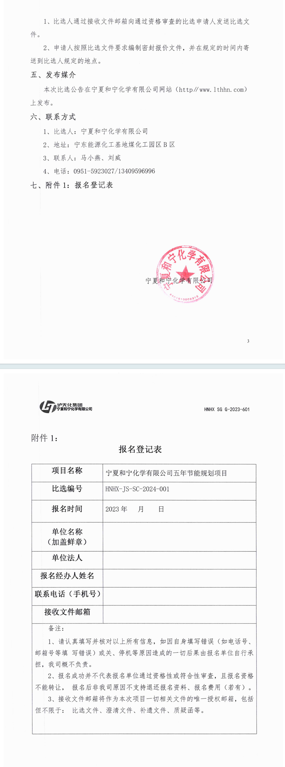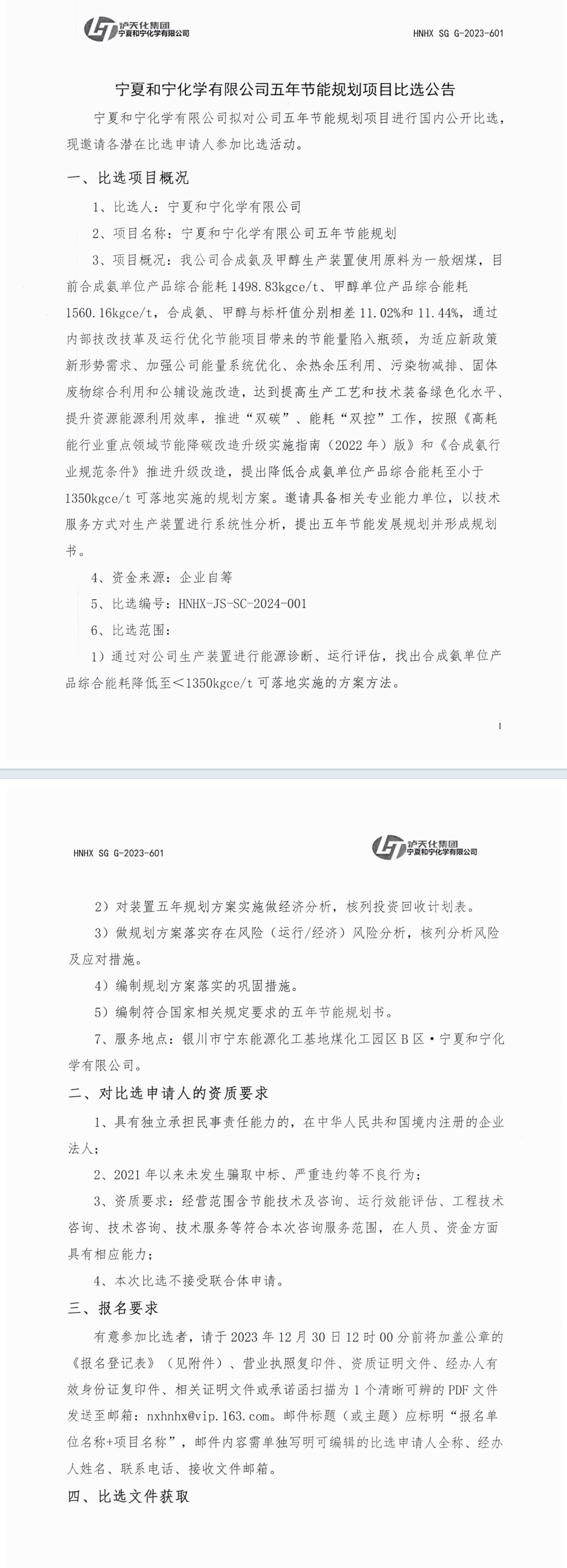 《寧夏和寧化學(xué)有限公司五年節(jié)能規(guī)劃》公開比選公告