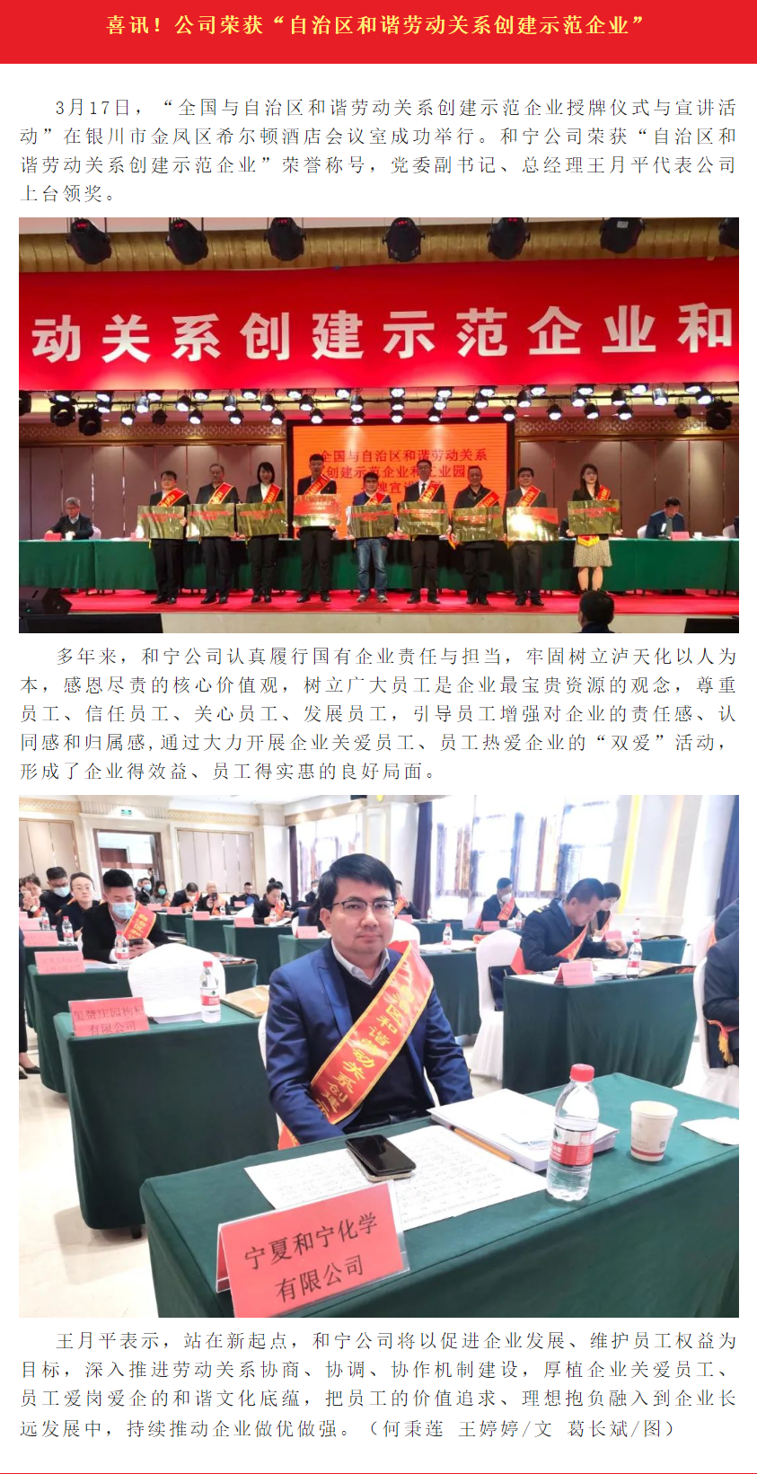 喜訊!公司榮獲“自治區(qū)和諧勞動關(guān)系創(chuàng)建示范企業(yè)”