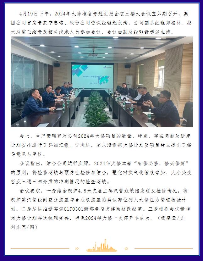 集團(tuán)公司寧忠培一行蒞臨和寧公司檢查指導(dǎo)2024年大修準(zhǔn)備工作