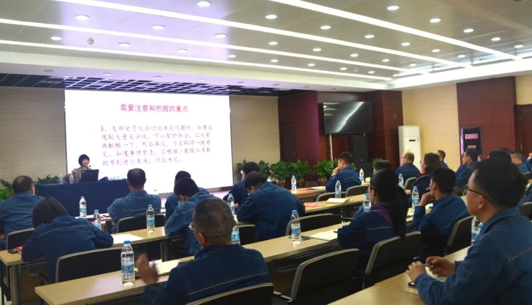 余瑛副教授依據《中國共產黨章程》《中國共產黨支部工作條例(試行)》《中國共產黨國有企業(yè)基層組織工作條例(試行)》等黨內法規(guī)制度,以“規(guī)范黨員的教育管理 提升國企黨組織的建設水平”為題,重點圍繞國有企業(yè)基層組織的設置及主要職責、黨員隊伍的管理和建設、班子建設、監(jiān)督及保障等三個方面,詳細講解了“三會一課”、民主評議黨員、組織生活會、談心談話、主題黨日、黨費收繳、發(fā)展黨員、做好換屆選舉工作等制度在實際工作中的運用,對實際工作中遇到的重難點問題進行了針對性答疑。
