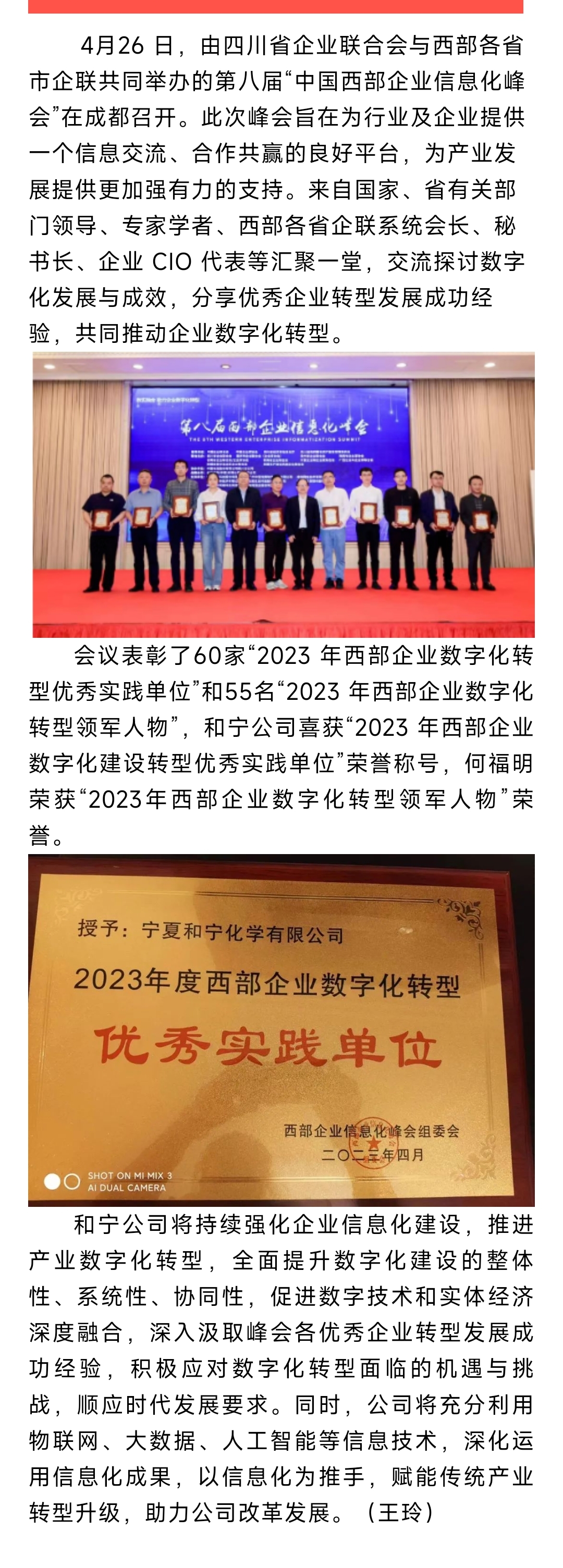 【喜訊】和寧公司喜獲西部企業(yè)數(shù)字化轉(zhuǎn)型優(yōu)秀實踐單位和領(lǐng)軍人物殊榮