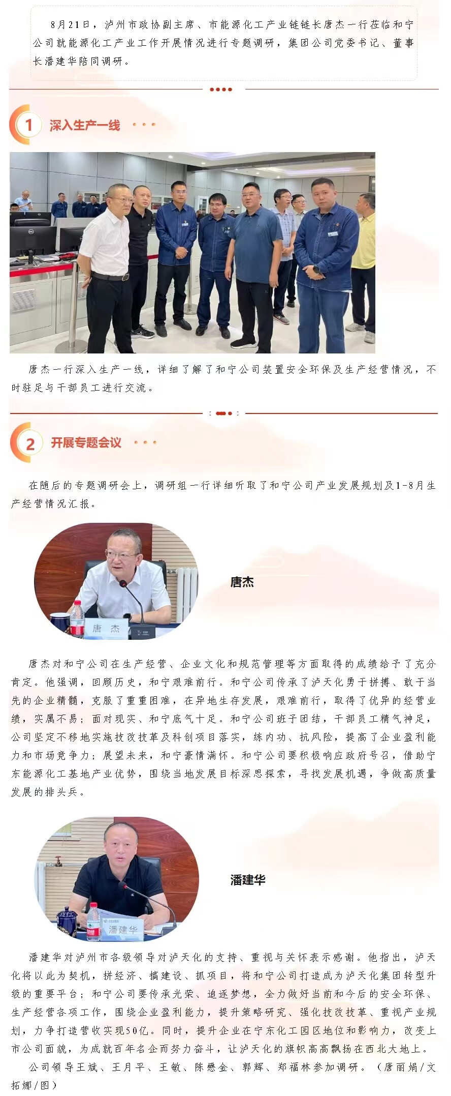 瀘州市政協(xié)副主席唐杰一行蒞臨和寧公司調(diào)研指導