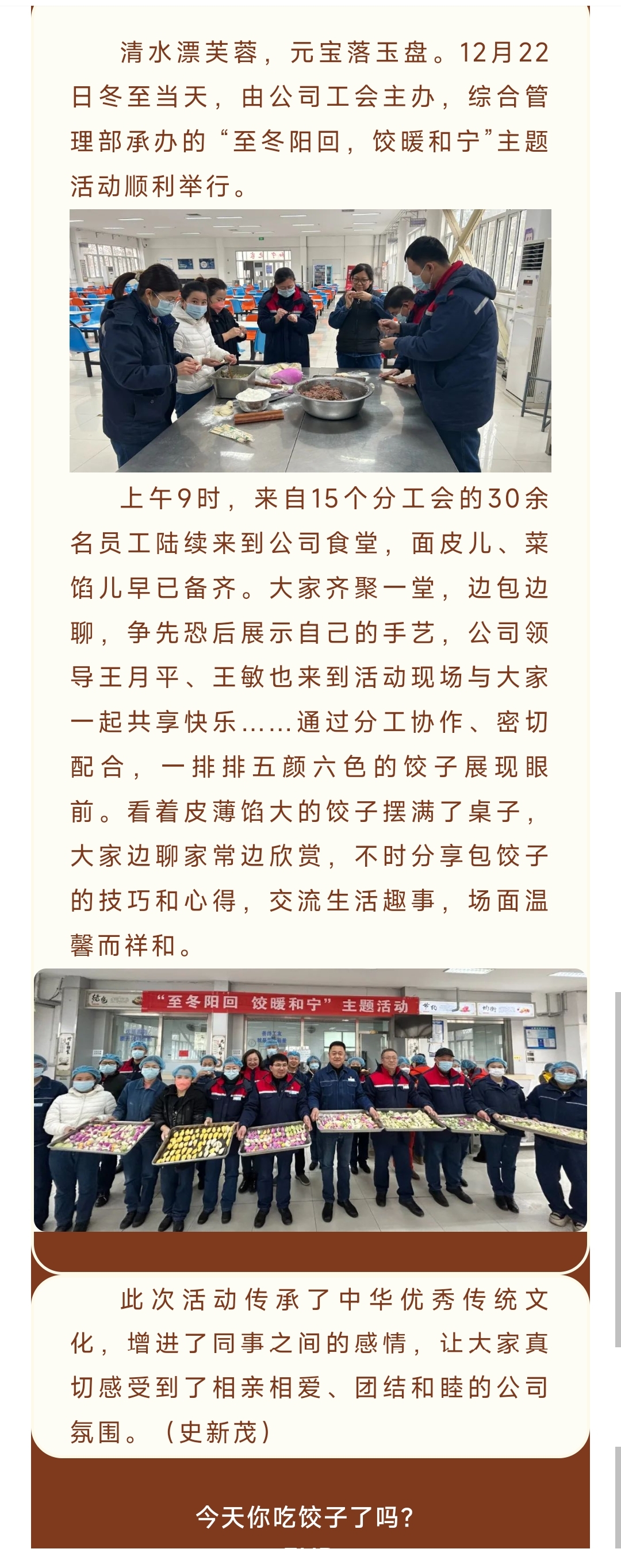 和寧公司工會(huì)組織開展“至冬陽回,餃暖和寧”主題活動(dòng)