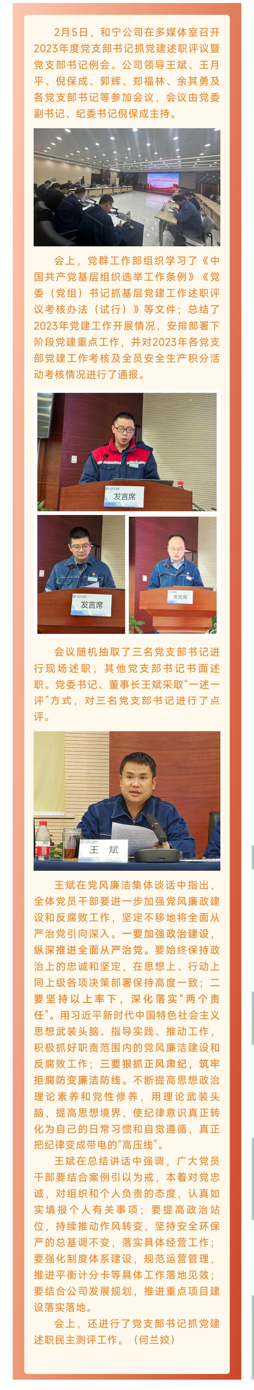 黨建引領 | 和寧公司召開2023年度黨支部書記抓黨建述職評議暨黨支部書記例會