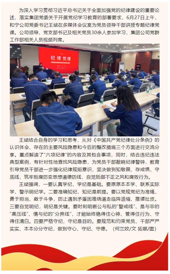王斌為公司黨員領(lǐng)導(dǎo)干部講紀(jì)律黨課