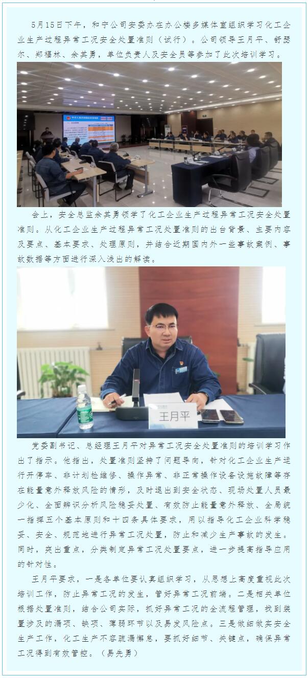 和寧公司組織學(xué)習(xí)化工企業(yè)生產(chǎn)過程異常工況安全處置準(zhǔn)則(試行)