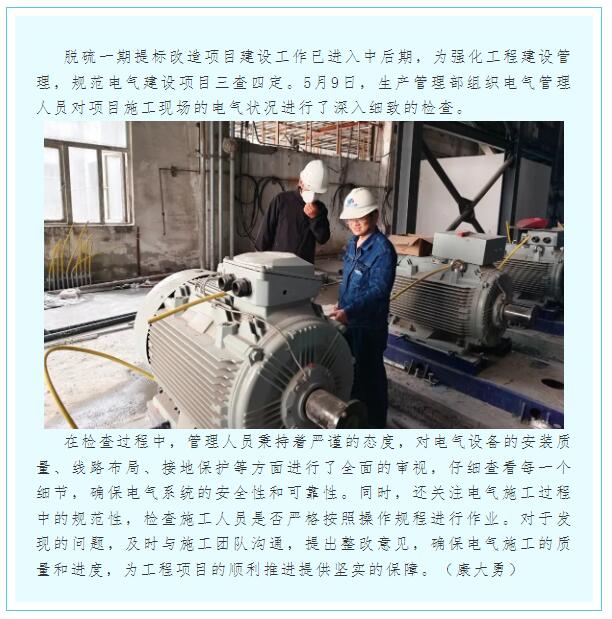 生產(chǎn)管理部組織開展脫硫一期提標(biāo)改造項目電氣檢查