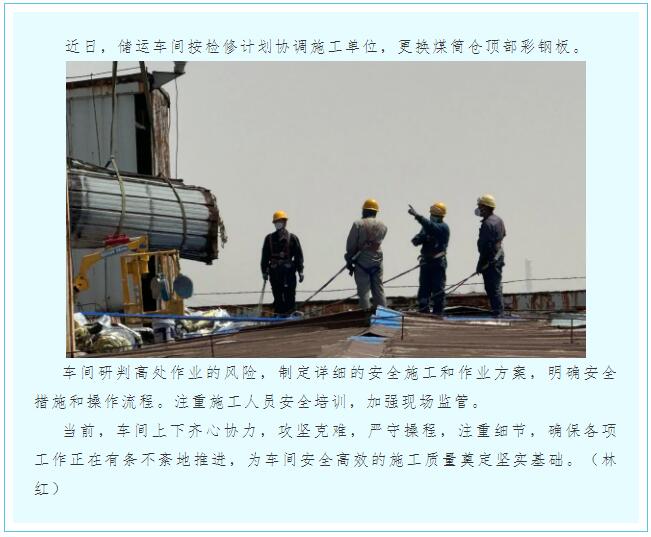儲(chǔ)運(yùn)車間煤筒倉(cāng)頂部彩鋼板更新作業(yè)全面推進(jìn)
