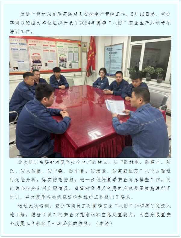 空分車(chē)間組織開(kāi)展夏季“八防”培訓(xùn)
