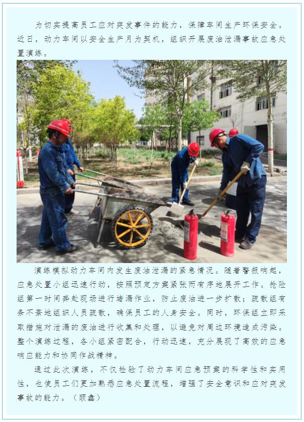 動力車間開展廢油泄漏事故應急處置演練