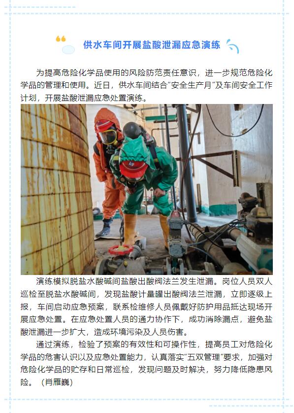供水車間開展鹽酸泄漏應(yīng)急演練