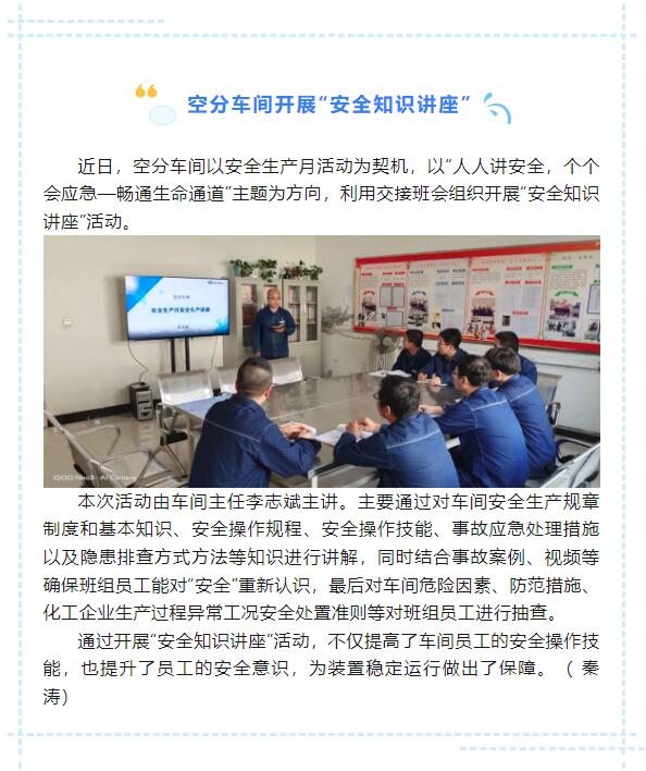 空分車間開展“安全知識講座”