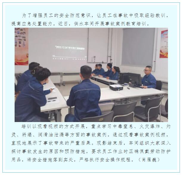 供水車間開(kāi)展事故案例教育培訓(xùn)