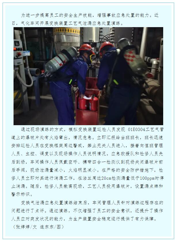 氣化車間開展變換氣泄漏應(yīng)急演練