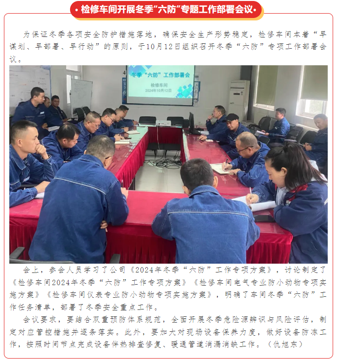 檢修車間開展冬季“六防”專題工作部署會議