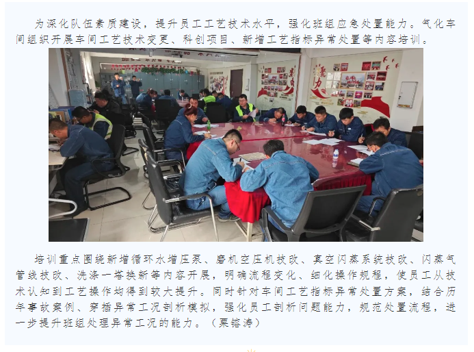 氣化車間組織開展技術(shù)變更、工藝指標(biāo)異常處置培訓(xùn)