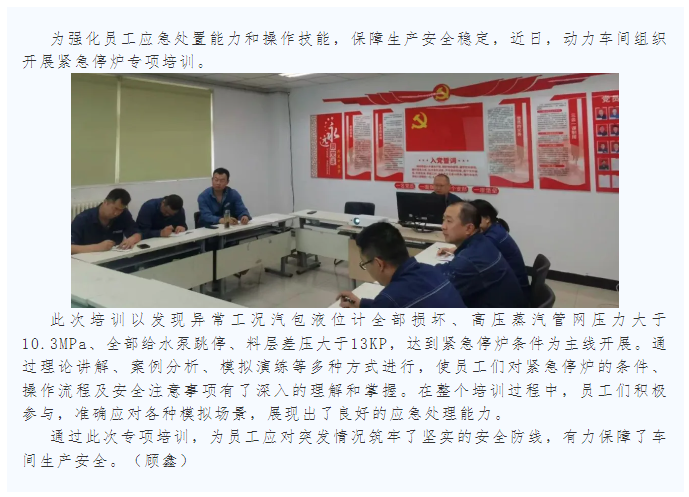 動(dòng)力車間組織開展緊急停爐專項(xiàng)培訓(xùn)