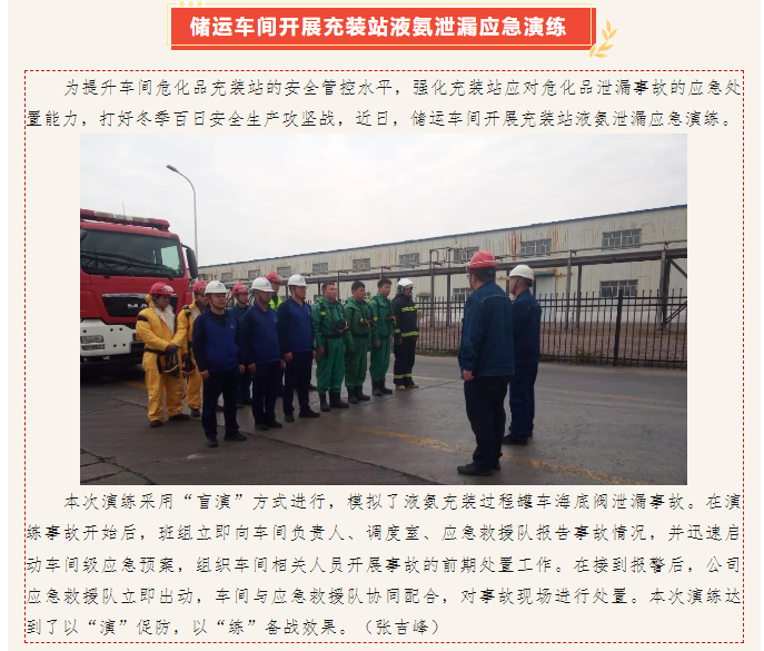儲運(yùn)車間開展充裝站液氨泄漏應(yīng)急演練