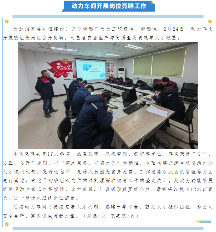 動(dòng)力車(chē)間開(kāi)展崗位競(jìng)聘工作