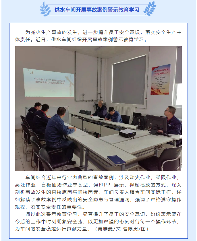 供水車間開展事故案例警示教育學(xué)習(xí)