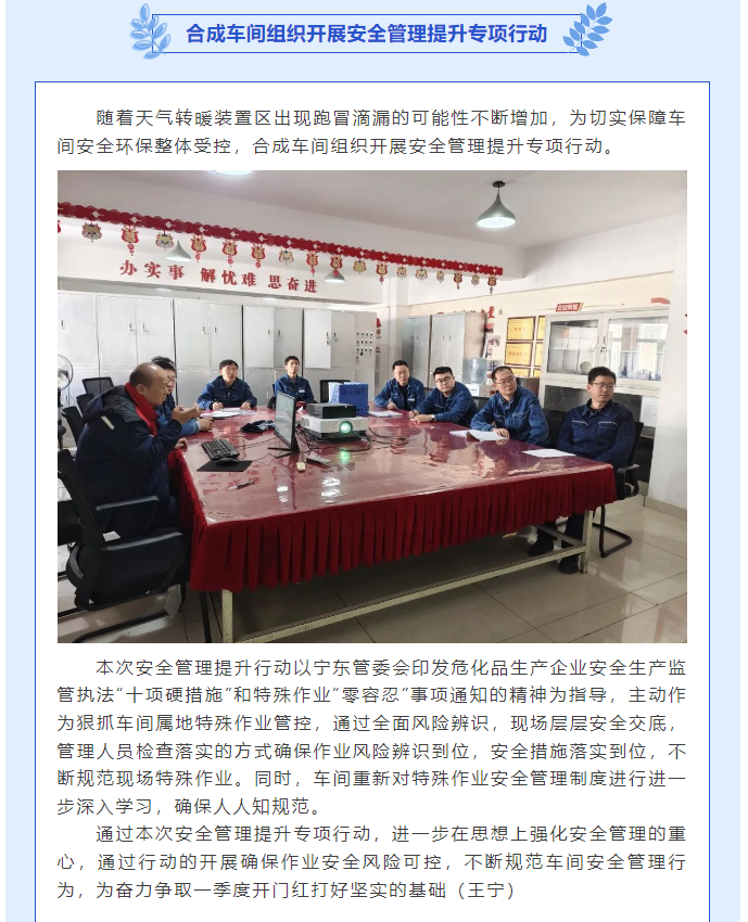 合成車間組織開展安全管理提升專項(xiàng)行動(dòng)