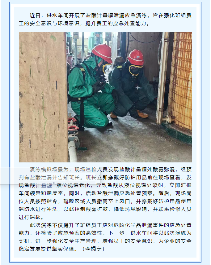 供水車間開展鹽酸泄漏應(yīng)急處置演練