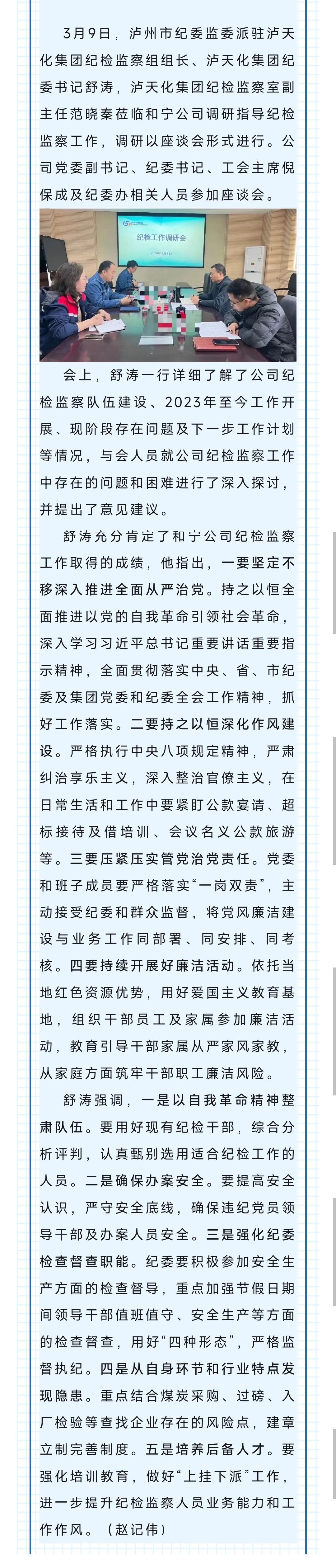 舒濤一行蒞臨和寧公司調(diào)研指導(dǎo)紀(jì)檢監(jiān)察工作