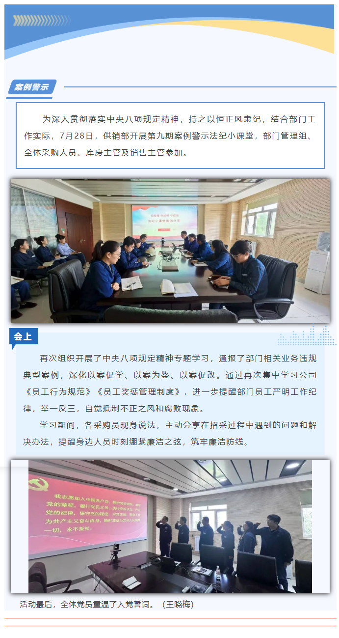 清風明紀丨供銷部開展案例警示法紀小課堂