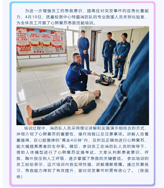 質(zhì)量檢測中心人員  進行心肺復蘇急救技能培訓