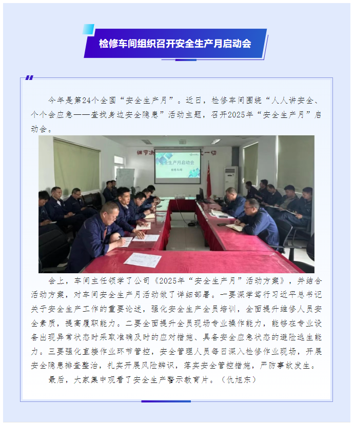 檢修車間組織召開安全生產(chǎn)月啟動會