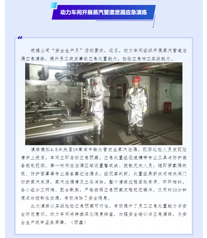 動力車間開展蒸汽管道泄漏應(yīng)急演練