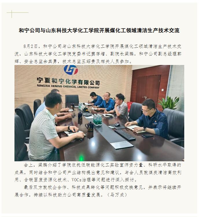 和寧公司與山東科技大學(xué)化工學(xué)院開展煤化工領(lǐng)域清潔生產(chǎn)技術(shù)交流